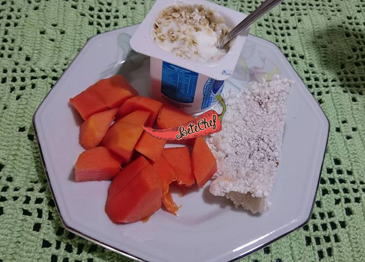 1 copo de iogurte com aveia em grãos + uma colher de sobremesa castanha da índia e castanha de caju triturada.